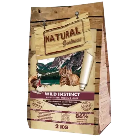 Elaborado con los más altos estándares de calidad y con trazabilidad total de sus ingredientes, Natural Greatness Wild Instinct Medium & Large es la elección inteligente para quienes buscan un alimento premium para gatos de mayor tamaño que cuide la salud de su compañero desde el primer día y a lo largo de toda su vida.