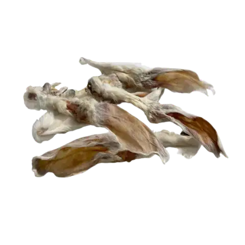 Orejas de Conejo Puromenú un snack natural para perros que va mucho más allá del simple premio. Deshidratadas enteras y con su pelo natural intacto, son una opción única que combina placer, nutrición y salud digestiva en un solo bocado. Sin cereales, sin conservantes, sin colorantes y sin ningún aditivo artificial. Lo que ves es exactamente lo que come tu perro.