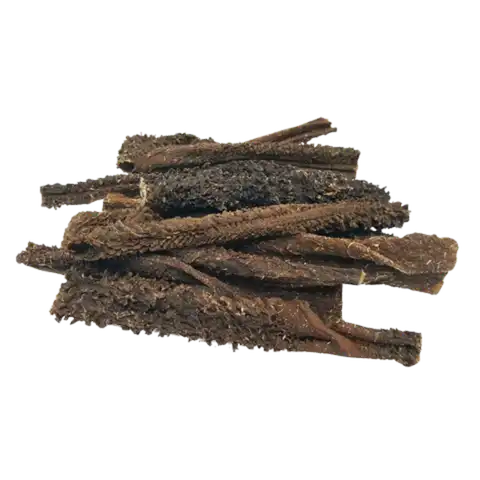 Tripa Verde de Cordero Puromenú tripa de cordero en formato deshidratado, un auténtico manjar para cualquier perro que merece lo mejor. Elaborada al natural, sin cereales, sin conservantes, sin colorantes y sin ningún aditivo artificial. Uno de los snacks naturales para perros más valorados por los dueños que alimentan con criterio: intenso en sabor, limpio en ingredientes y extraordinariamente beneficioso para la salud digestiva.