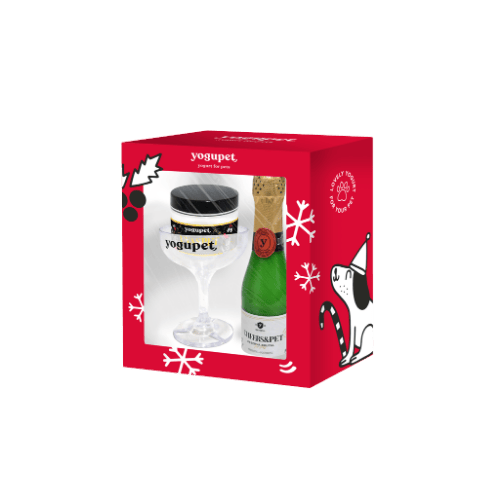 Yogupet Navidad (Cheers&pet + Copa + UvasPet ), el pack perfecto para brindar juntos estas fiestas. Incluye champán pet Cheers&Pet con kéfir de cabra sin lactosa, copa exclusiva y el delicioso postre UvasPet de textura cremosa. Un regalo navideño saludable diseñado para que tu perro o gato disfrute de un brindis seguro y adaptado a sus necesidades.
